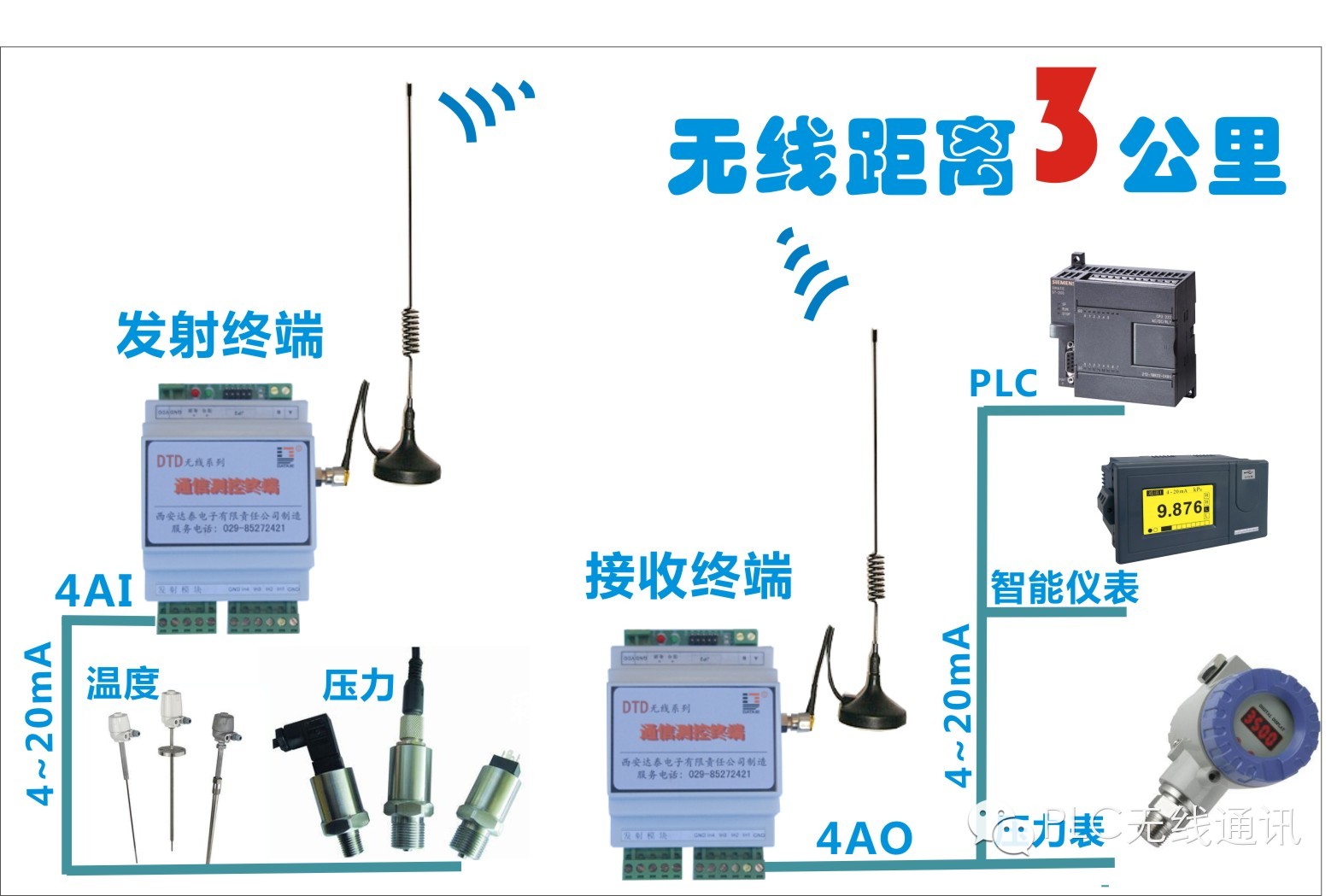 發表時間:2017-12-01 00:00 一體化溫度變送器一般由測溫探頭(熱電偶或熱電阻傳感器)和兩線制固體電子單元組成。采用固體模塊形式將測溫探頭直接安裝在接線盒內,從而形成一體化的變送器。一體化溫度變送器一般分為熱電阻和熱電偶型兩種類型。 熱電阻溫度變送器是由基準單元、R/V 轉換單元、線性電路、反接保護、限流保護、V/I轉換單元等組成。測溫熱電阻信號轉換放大后,再由線性電路對溫度與電阻的非線性關系進行補償,經 V/I轉換電路后輸出一個與被測溫度成線性關系的 4~20mA的恒流信號。 熱電偶溫度變送器一般由基準源、冷端補償、放大單元、線性化處理、V/I轉換、斷偶處理、反接保護、限流保護等電路單元組成。它是將熱電偶產生的熱電勢經冷端補償放大后,再帽由線性電路消除熱電勢與溫度的非線性誤差,最后放大轉換為 4~20mA電流輸出信號。 為防止熱電偶測量中由于電偶斷絲而使控溫失效造成事故,變送器中還設有斷電保護電路。 當熱電偶斷絲或接解不良時,變送器會輸出**值(28mA)以使儀表切斷電源。 一體化溫度變送器具有結構簡單、節省引線、輸出信號大、抗干擾能力強、線性好、顯示儀表簡單、固體模塊抗震防潮、有反接保護和限流保護、工作可靠等優點。 一體化溫度變送器的輸出為統一的 4~20mA 信號;可與微機系統或其它常規儀表匹配使用。也可用戶要求做成防爆型或防火型測量儀表。 無線溫度變送器也就是無線信號傳輸器DTD110F,可以采集工業現場的變送器輸出的標準4~20mA電流信號并通過無線方式傳送,遠端同時輸出4~20mA電流信號。無線可靠傳輸距離可達3公里以上。解決了有線方案施工繁瑣、設備后期維護成本高的難題。與傳感器、變送器、PLC、DCS、變頻器、智能儀表等配套使用。不需要編寫程序,不需要布線,一般電工就可以調試使用。 傳感器和變送器在儀器、儀表和工業自動化領域中起著舉足輕重的作用。與傳感器不同,變送器除了能將非電量轉換成可測量的電量外,一般還具有一定的放大作用。 上海自動化儀表三廠銷售部 聯系人:萬經理 電話:013918632758 傳真:021-61294342 網址:www.shhyb3c.com  |